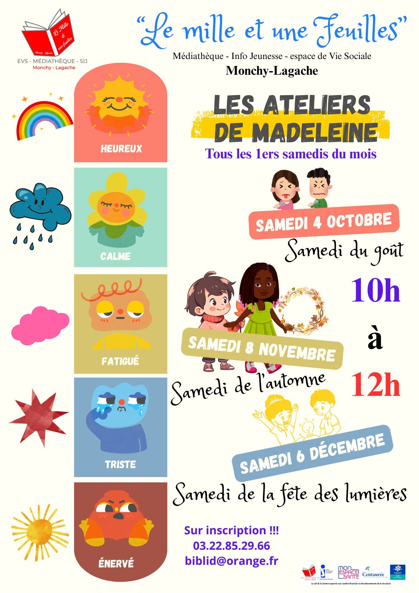 Les ateliers de Madeleine Détails des prochaines sessions Du mardi 30 septembre 2025 à 13:55 au vendredi 05 décembre 2025 à 13:55 Lieu Monchy-Lagache Public Enfants Catégorie Atelier Afficher les options de partage × Partager