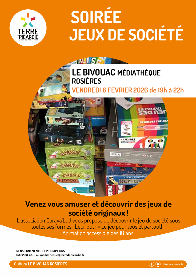 Soirée jeux de société à la médiathèque Le Bivouac Rosières ![]()